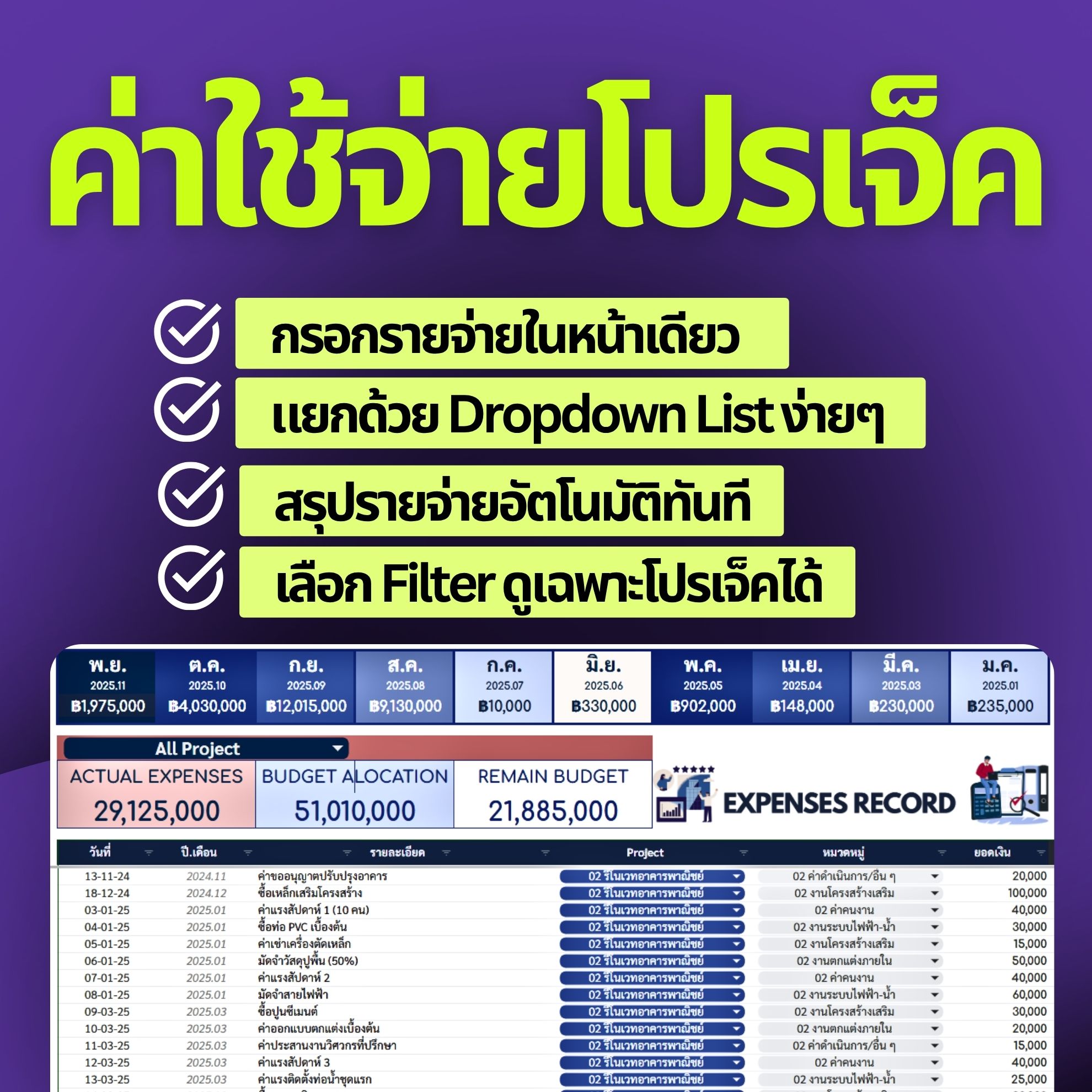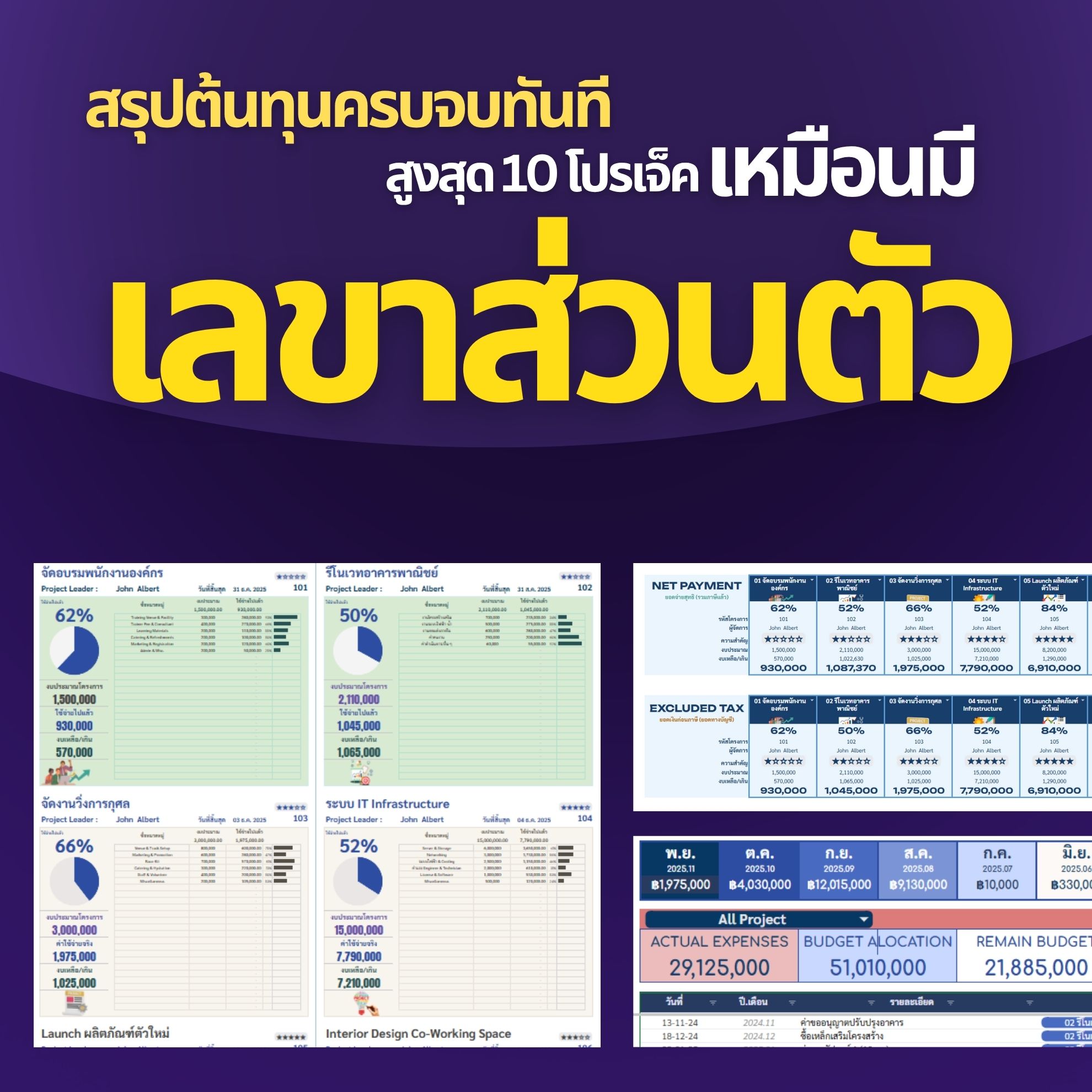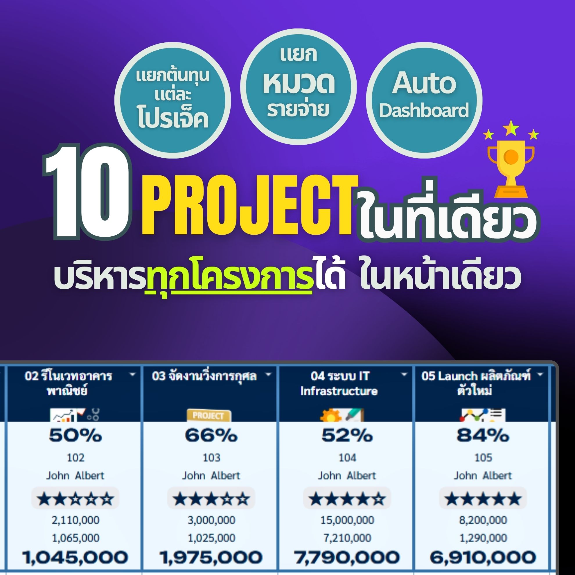 ✓ คุมงบ 10 โปรเจ็คในไฟล์เดียว