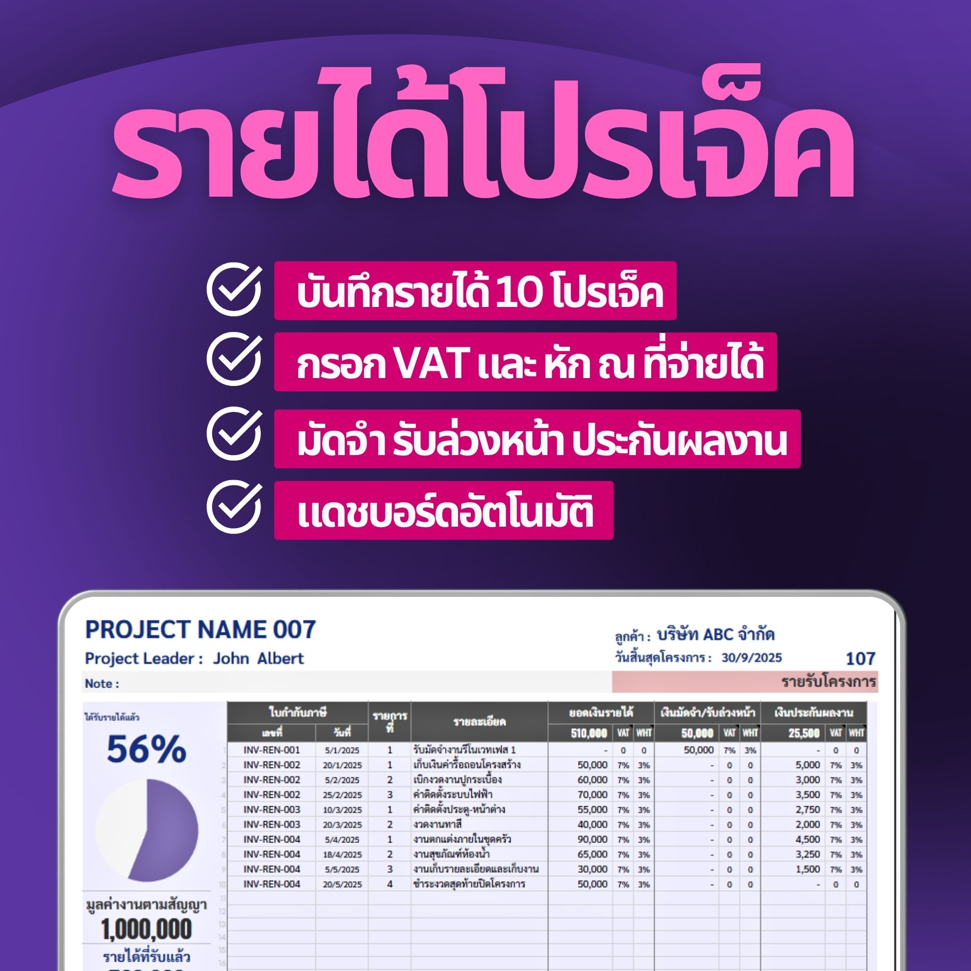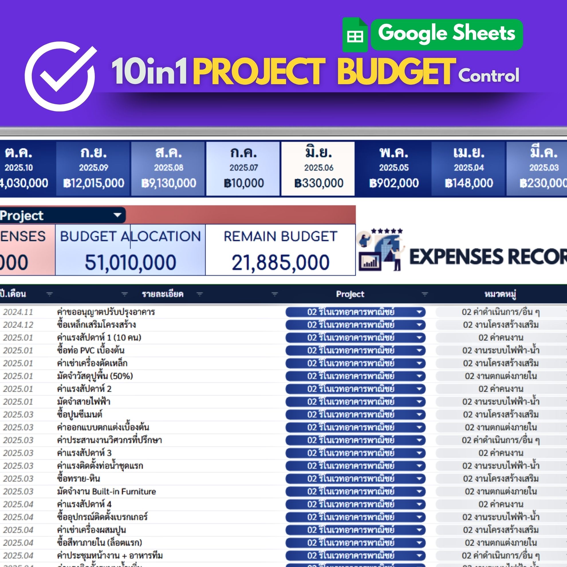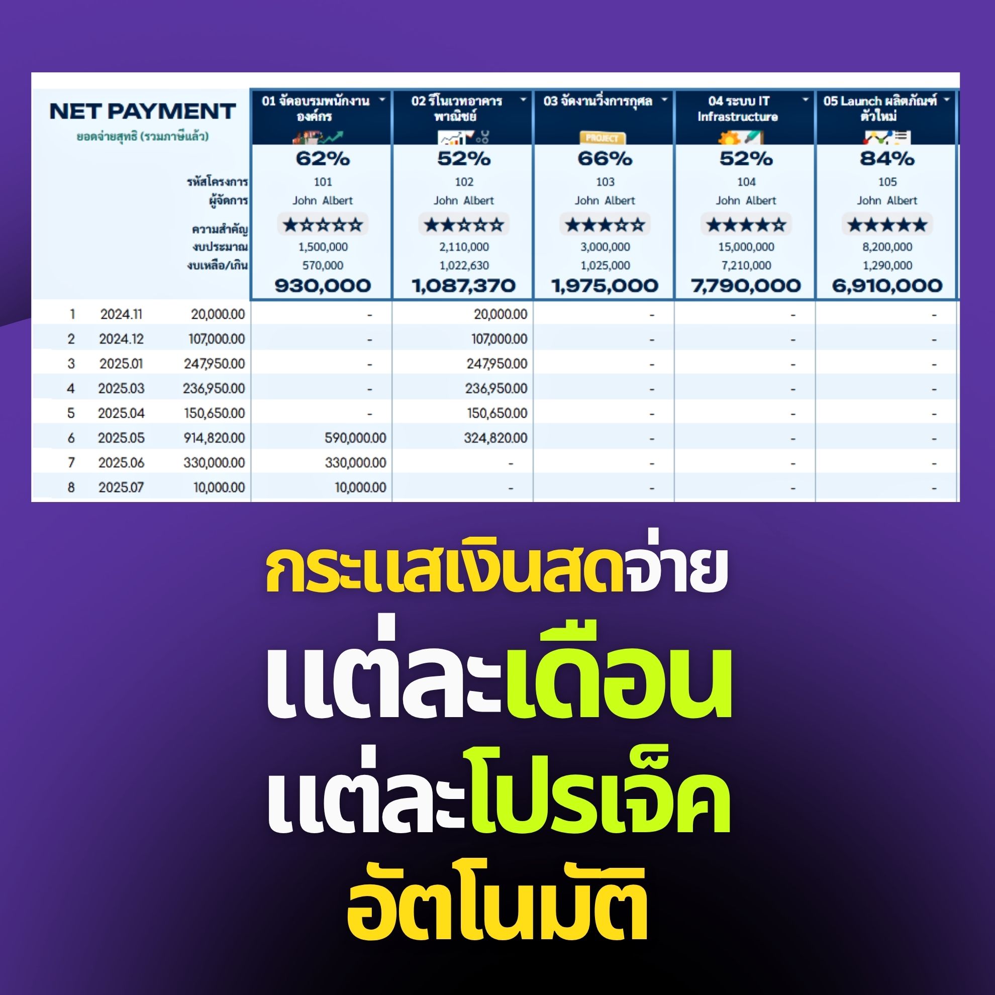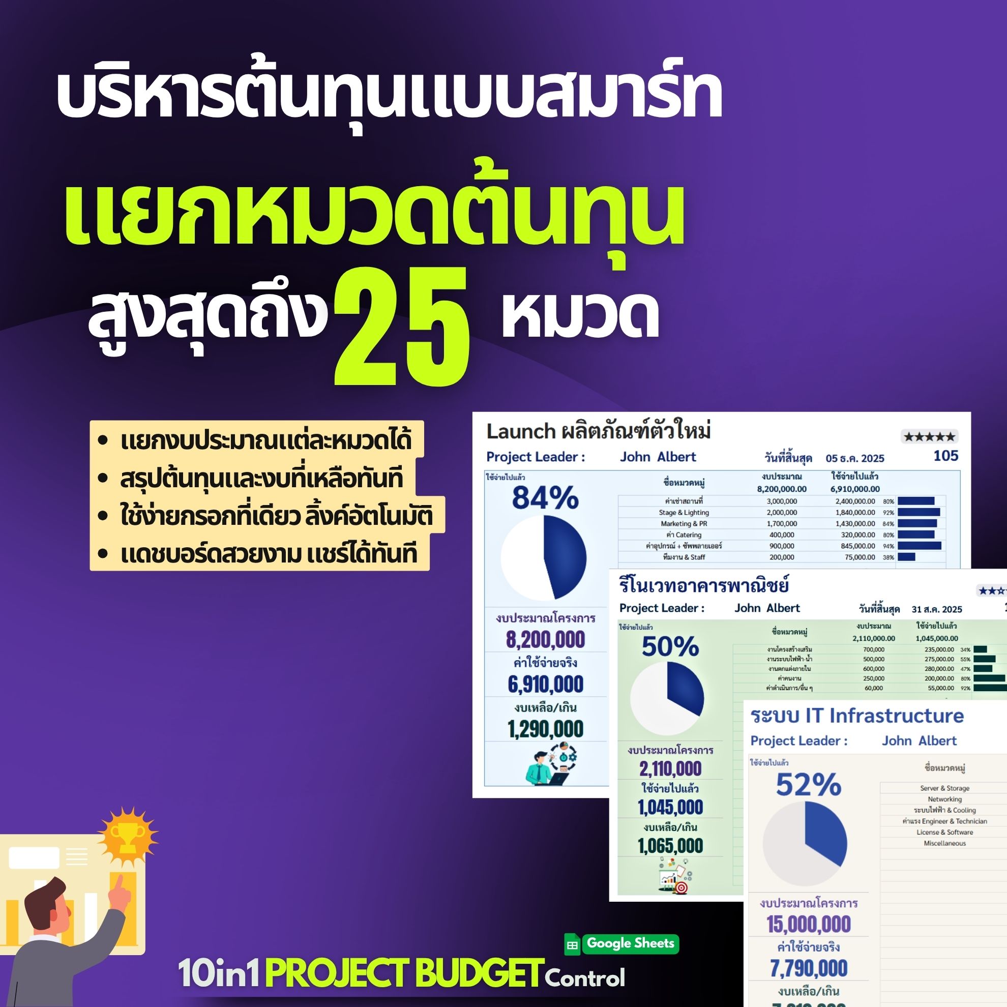 ✓ คุมงบ 10 โปรเจ็คในไฟล์เดียว