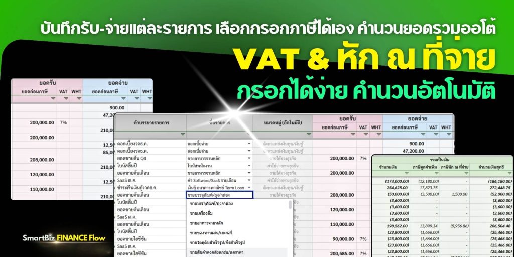 • เลือก VAT/WHT แล้วระบบ คำนวณสุทธิ ให้ทันที