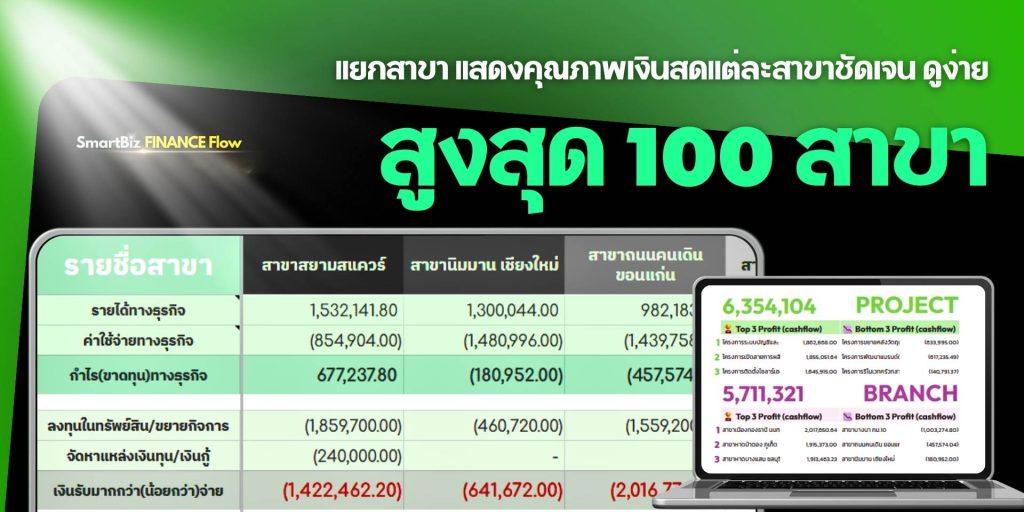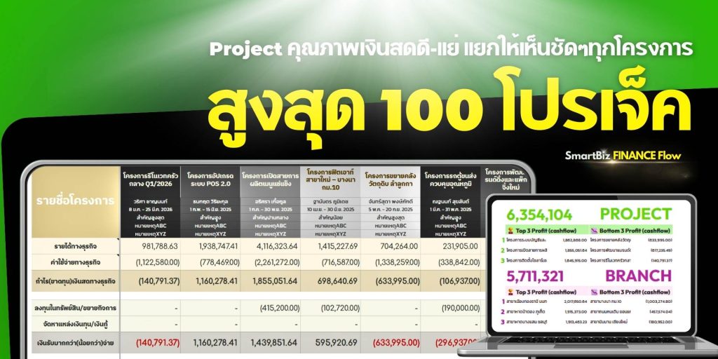 • ผูกทุกแถวกับ โครงการ/สาขา แล้วสรุปให้—อะไร “ดูดเงิน” อะไร “สร้างเงิน”