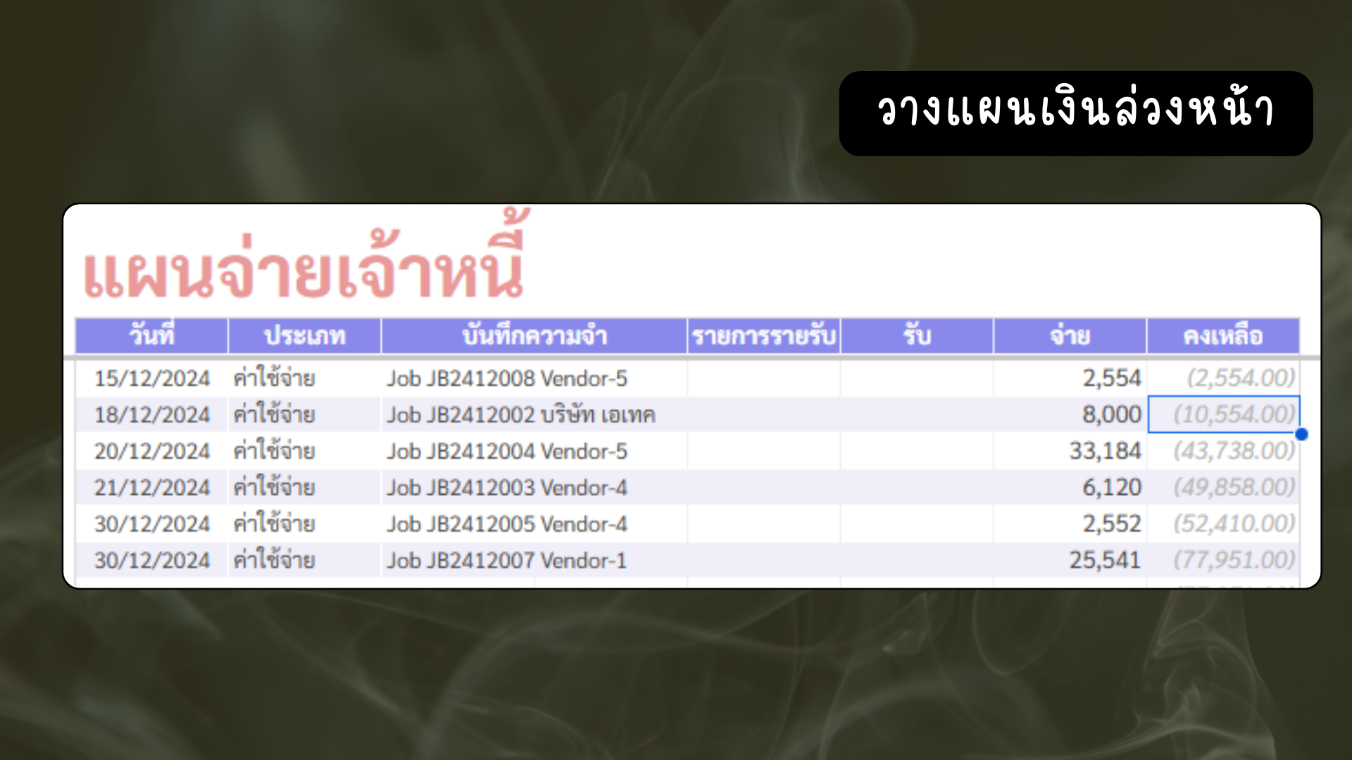 ใช้สำหรับวางแผนการจ่ายเงินในช่วงเวลาต่าง ๆ เพื่อให้คุณมั่นใจว่ากระแสเงินสดเพียงพอ