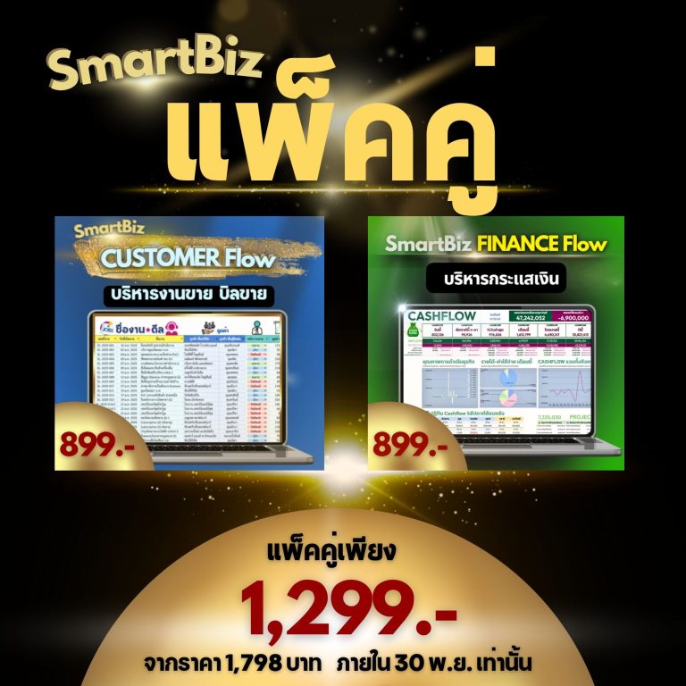 สั่งซื้อแพ็กคู่กับ SmartBiz FinanceFlow (กระแสเงินสด) 2 เทมเพลต เพียง ฿1,299