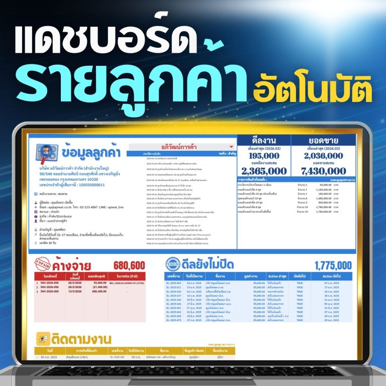 รวมอยู่ในไฟล์เดียว แดชบอร์ดอัตโนมัติ ครบจบ Flow งานขายตั้งแต่เสนอราคา-จนถึง-จบงานรับเงิน